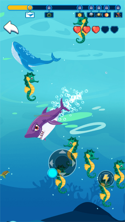 3、智能的AI对手。其他海洋生物会根据玩家强度调整行为模式,保持挑战性。
