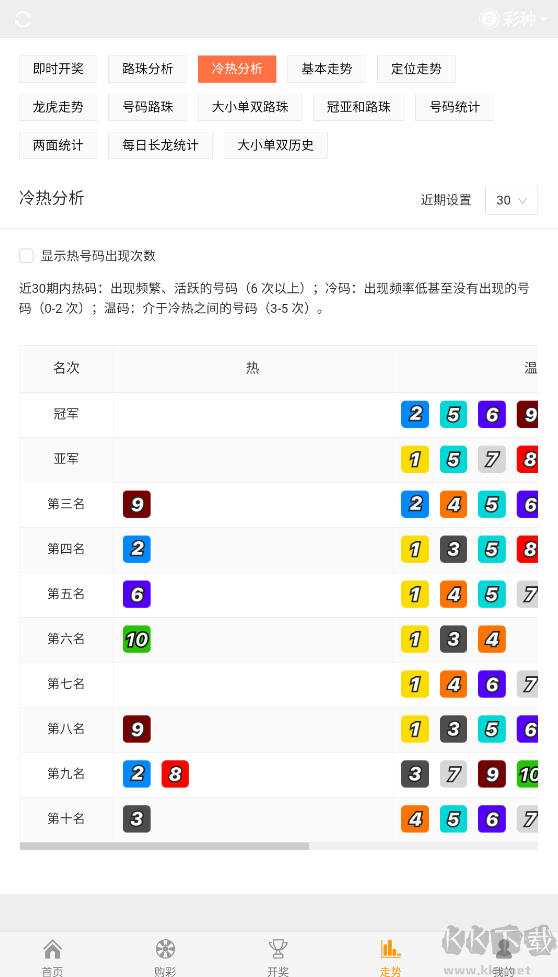 1、彩数据实时更新,支持一键分析功能,借助彩査询功能,推荐如何分析,确保用户能够提高彩的中奖率,搜索任何您想查看的内容。在开奖大厅中有十分优秀的分析体验,每一期的号码都有十分精彩的功能,包含了每一期连号的走势分析图,资源十分丰富。