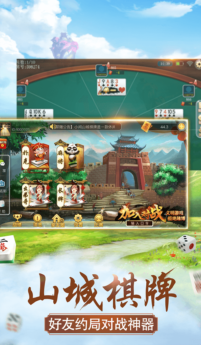 小闲山城棋牌是一款超火爆的娱乐游戏,画面清晰细腻,还有最新最好玩的游戏玩法等你来体验,24小时真人玩家竞技切磋,喜爱娱乐游戏的你千万不要错过了这款哦!